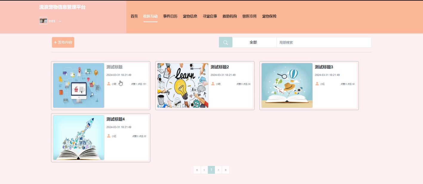 | 预期结果 | 页面显示包含有搜索关键字的宠物信息 |