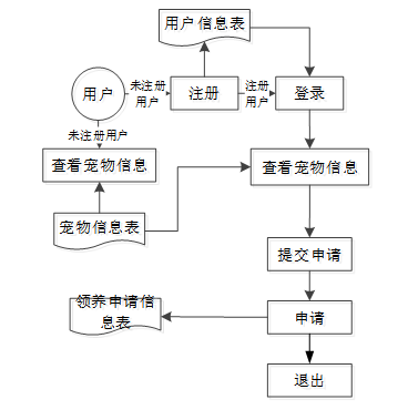 流浪宠物信息管理平台主要的目的就是实现对宠物的领养申请,图2-1就是系统的数据流图。