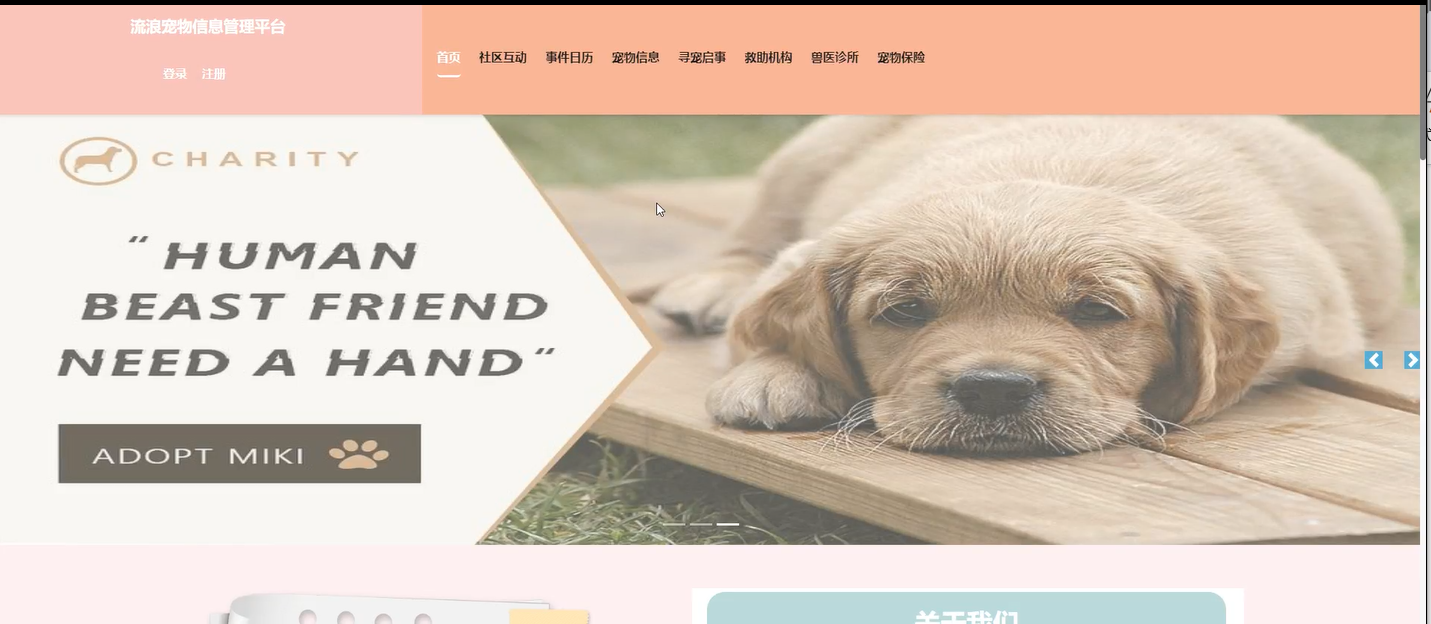因此,建立一个流浪宠物信息管理平台显得尤为迫切。该平台可以集成流浪宠物的信息收集、整理、分析和发布等功能,实现流浪宠物信息的数字化管理。通过该平台,政府和社会组织可以更加全面地了解流浪宠物的状况和需求,制定更加精准的救助策略。同时,该平台还可以促进志愿者、爱心人士和救助机构之间的信息共享和协同合作,提高救助效率和质量。