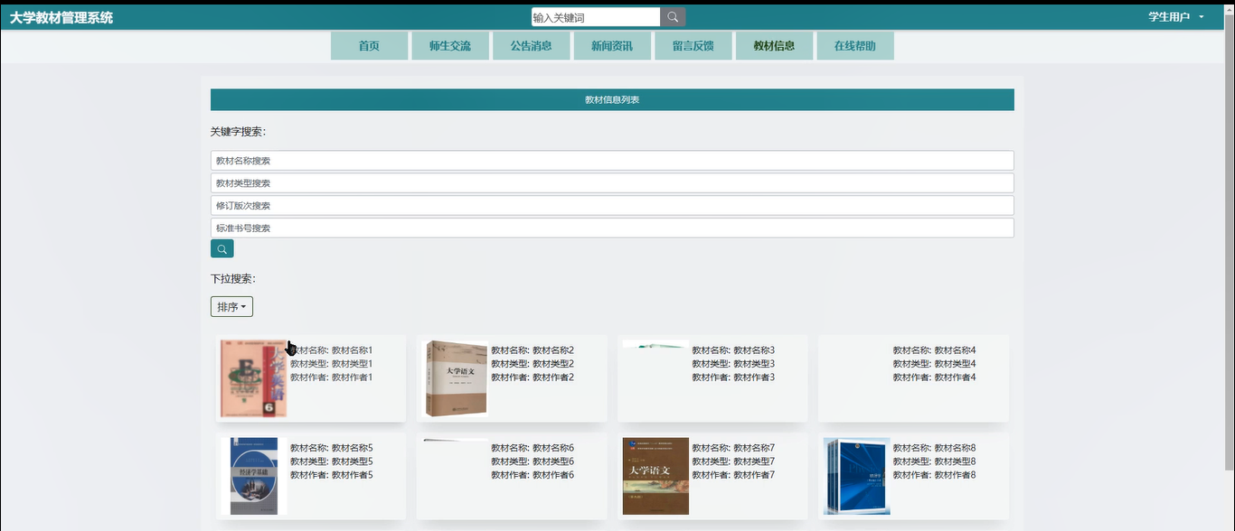 关键词:大学教材管理系统;springboot框架,Mysql 数据库