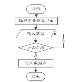 管理员可以对教材信息等进行的修改,用户可以对自己权限内的信息进行修改,首先进入修改信息界面,输入修改信息数据,系统进行数据的判断验证,修改信息合法则修改成功,信息更新至数据库,信息不合法则修改失败,重新输入。修改信息流程图如图2-2所示。