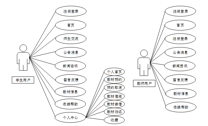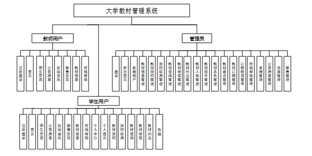 按照大学教材管理系统的角色,划分为了学生用户模块、教师用户模块和管理员模块这三大部分。