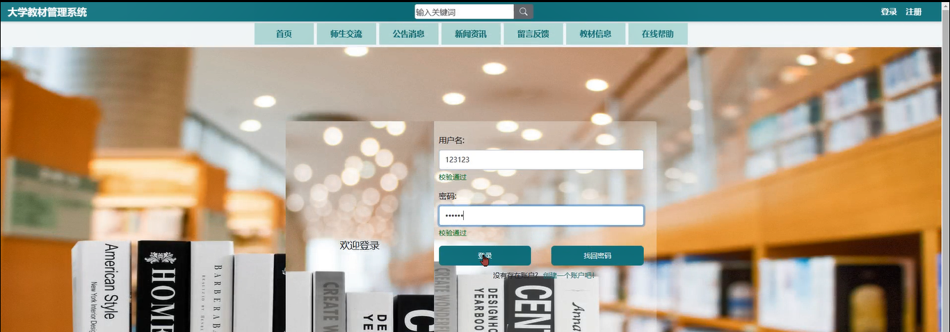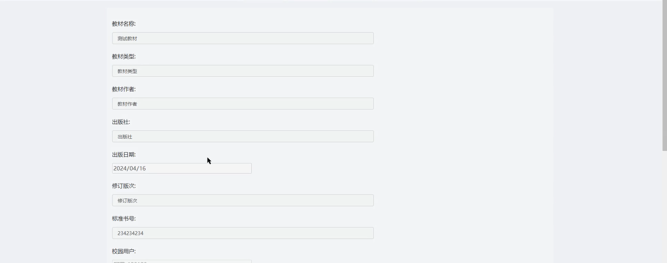 | 预期结果 | 提交以后,页面首页会显示新的教材信息 |