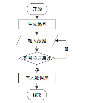 用户成功登入系统后就能够实现增加数据的操作,增加数据的编号由系统生成,用户不能随意填写,除了编号以外,其他增加信息用户自己填写,填写后的信息需经过系统验证,验证通过后即可完成数据新增,数据新增的流程图如下图2-2所示。