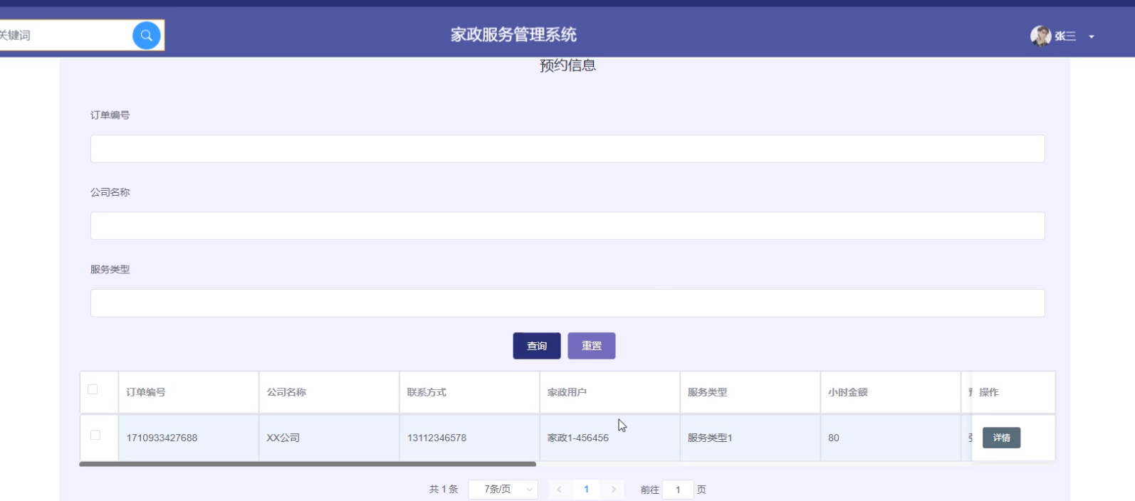 预约信息:用户可以查看已预约的家政服务信息,包括预约时间、服务项目等。界面如下图所示。