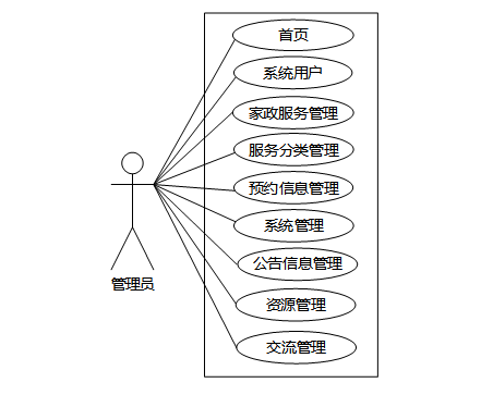 家政服务管理系统中管理员用户用例图如图2.2所示:
