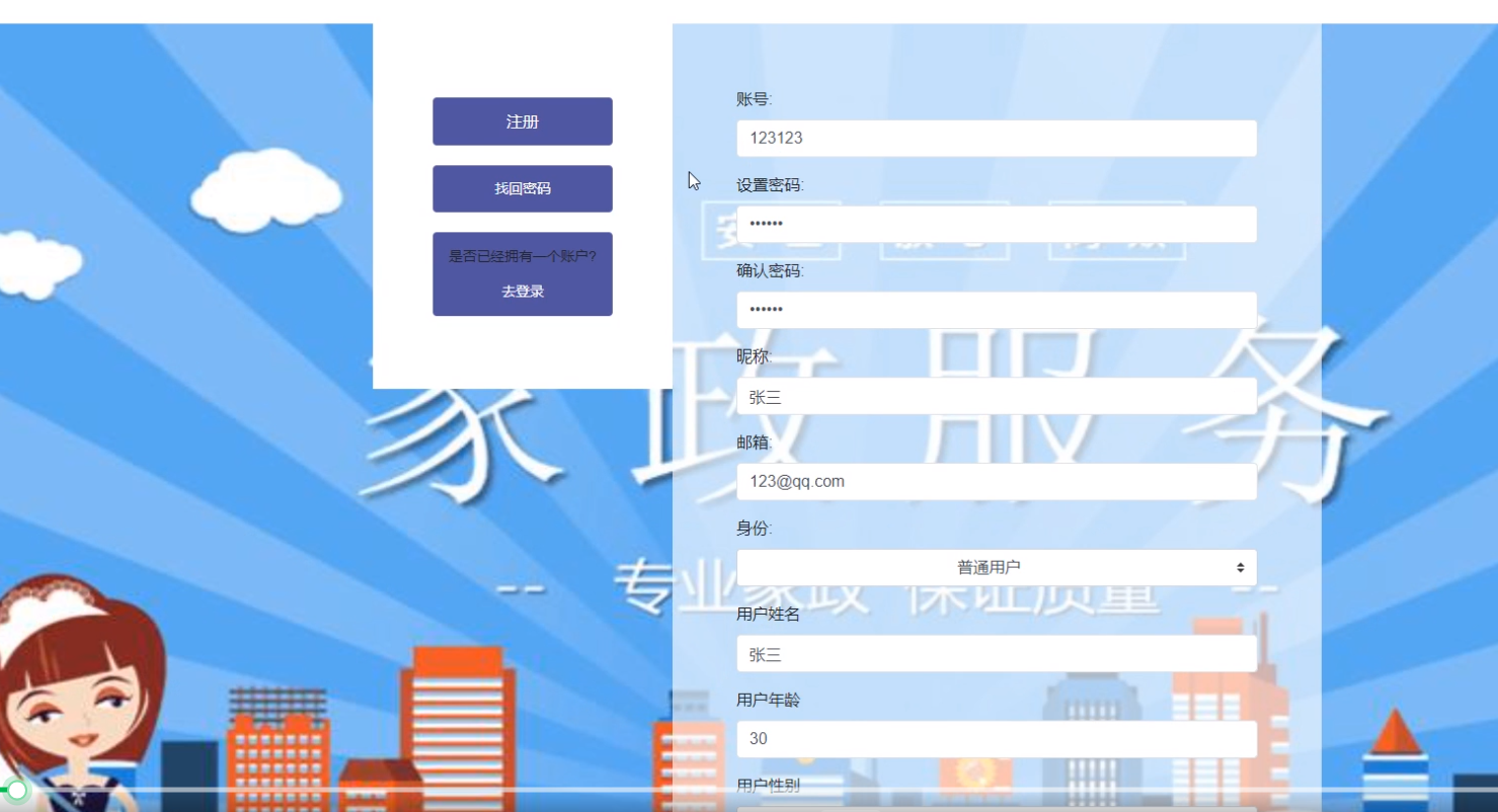 登录:家政用户需要通过家政账号和密码登录系统,以便进行管理和提供家政服务。