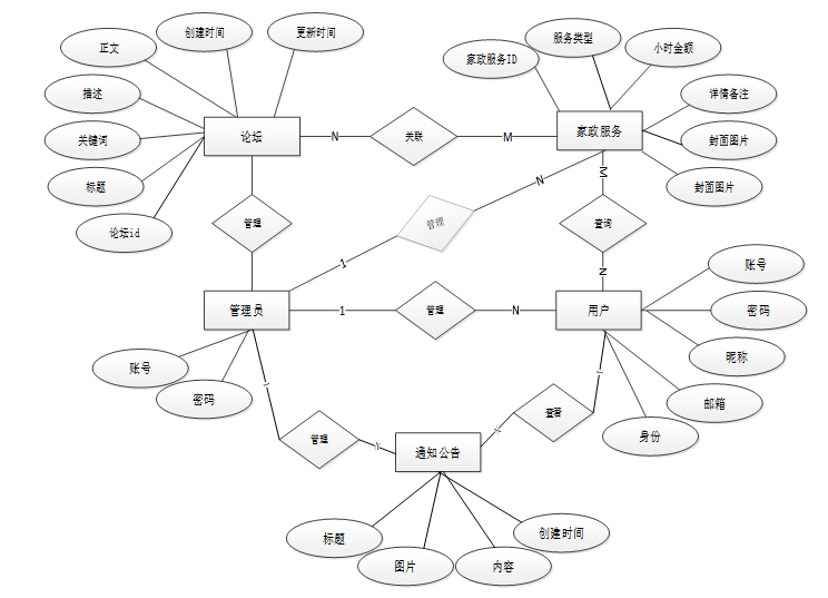 下面是整个家政服务管理系统中主要的数据库表总E-R实体关系图。