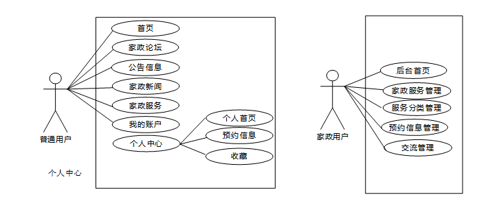 家政服务管理系统中用户角色用例图如图2.1所示: