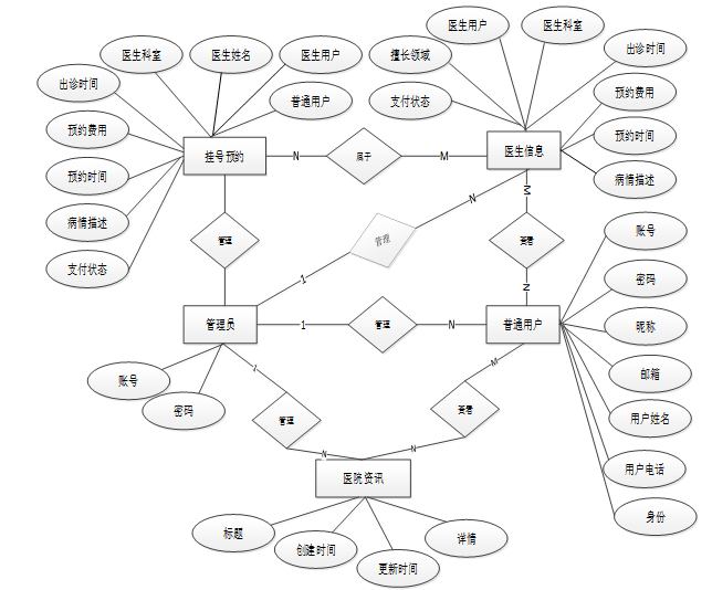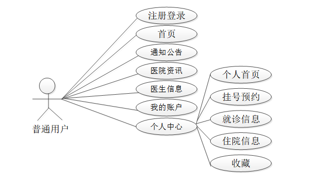 本系统的用户包括普通用户、医生用户和管理员。以普通用户模块的结构图为例进行分析,用户模块结构图为例进行分析,如下图: