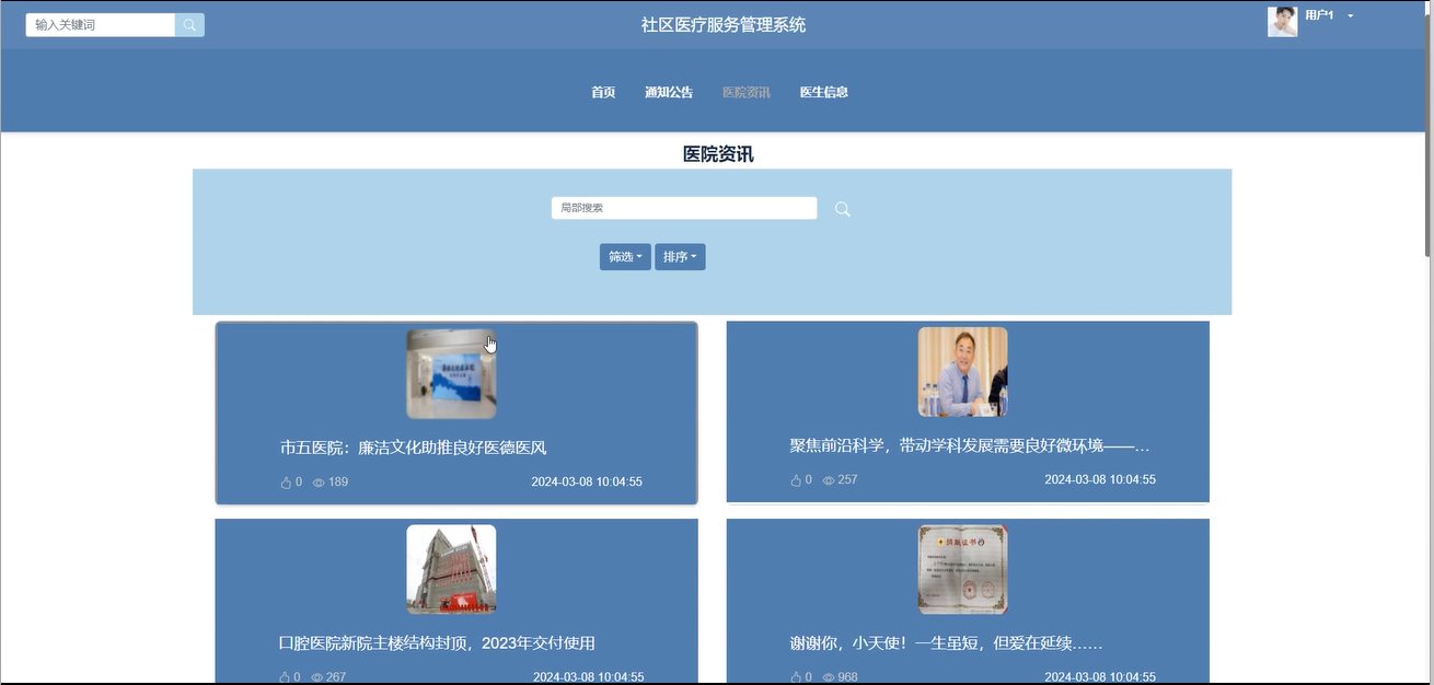 (4)医院资讯:可以查看医院资讯列表信息,可以查看某一资讯详情并进行点赞、收藏和发表评论操作。