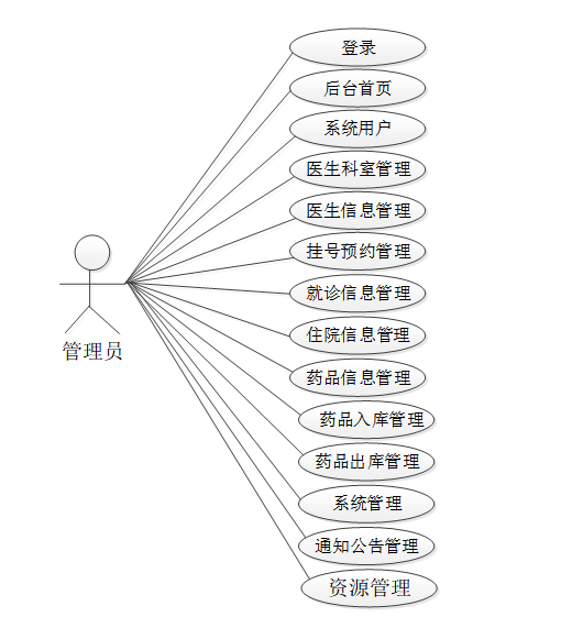 图2-6基于SpringBoot的社区医疗服务管理系统管理员角色用例图