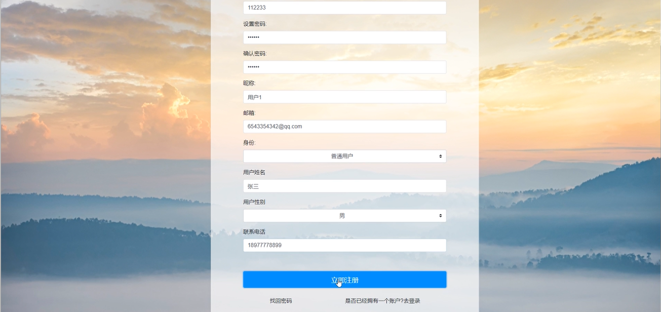 (6)我的账户:用户点击“我的”可以对个人资料以及密码进行更新。