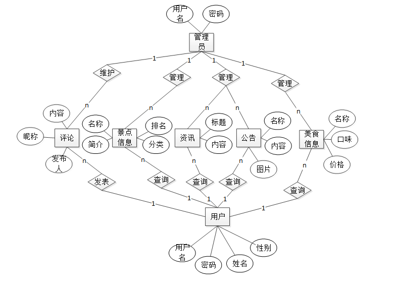 旅游数据分析与可视化系统开发的总E-R图如下: