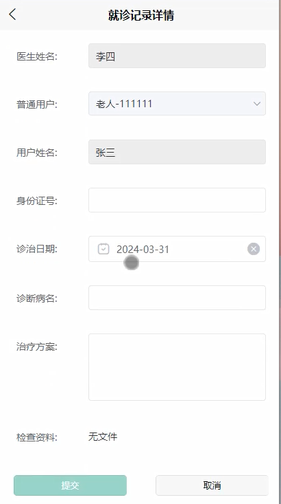 就诊记录管理: 管理用户的就诊历史记录,包括诊断、治疗等信息。