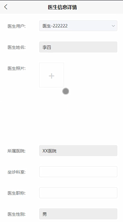 医生用户点击“我的”-“ 医生信息”这一菜单,可以查看和编辑个人信息和专业资质。界面如下图4-9所示。