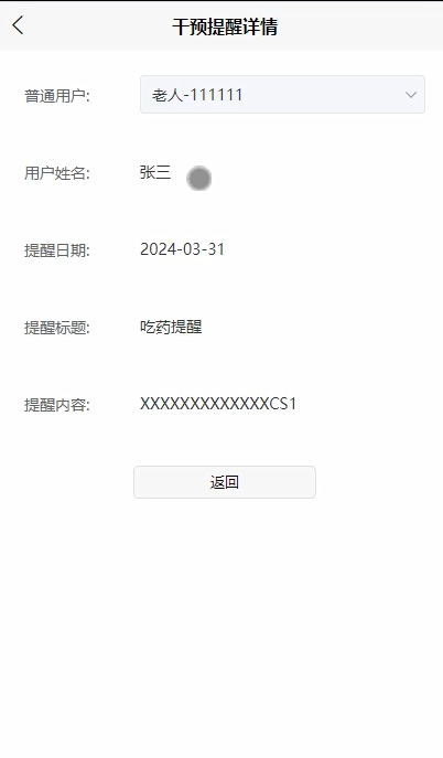 用户点击“我的”-“干预提醒”,可以查看提醒内容,界面如下图4-8所示。