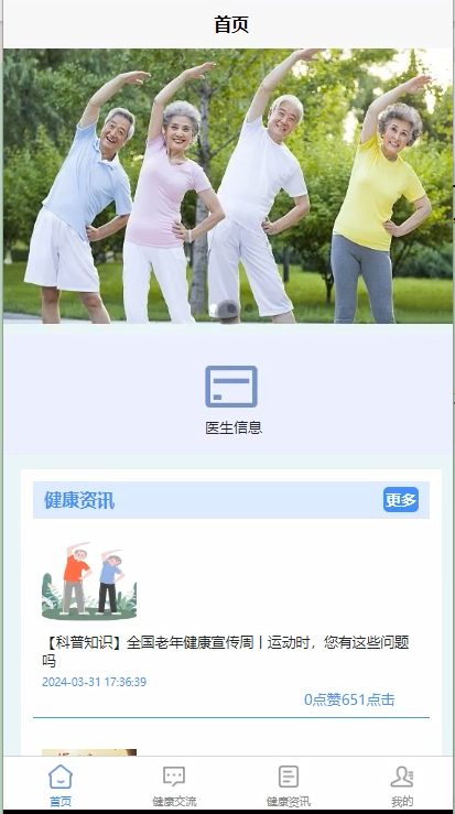 首页: 展示医生信息、健康资讯、健康交流等内容,吸引用户关注。