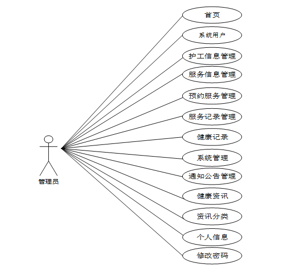 图2-7 SpringBoot居家养老服务平台管理员角色用例图