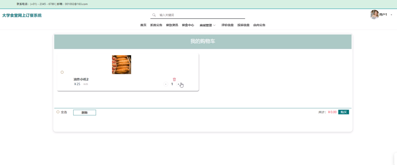当用户浏览到心仪的商品时,可以将商品添加至购物车内,查看购物车列表,修改或者删除购物车。