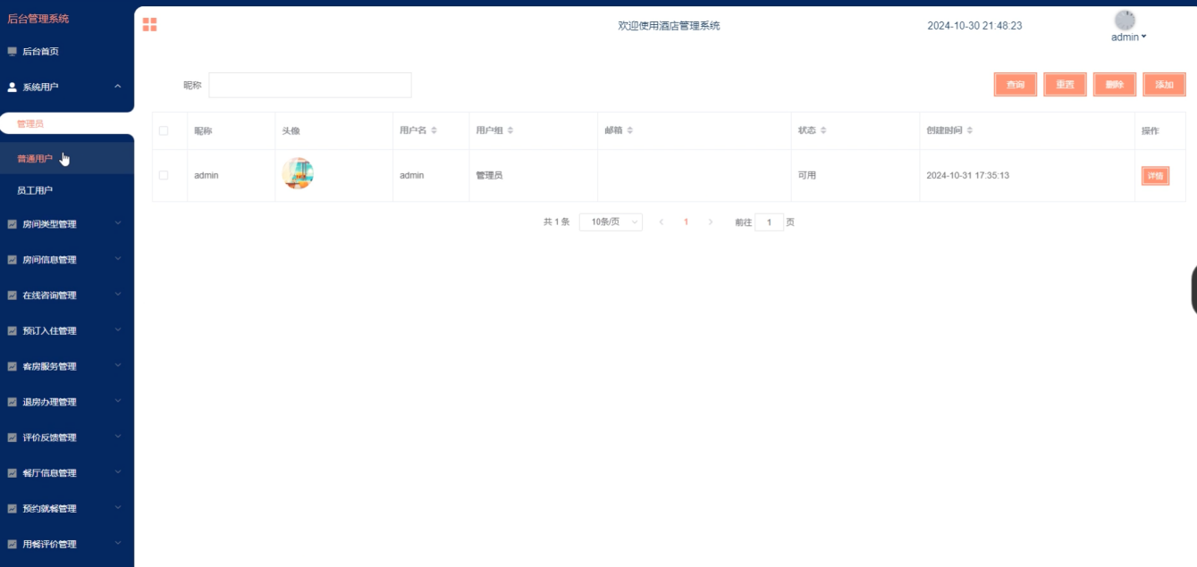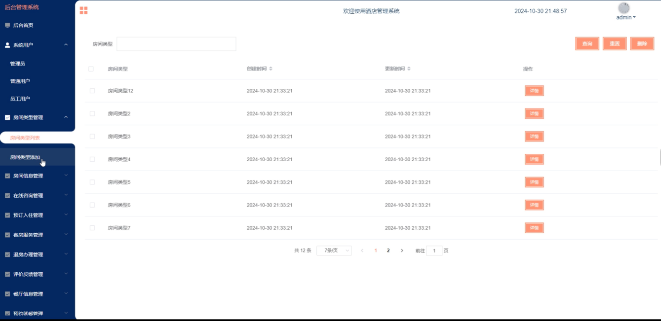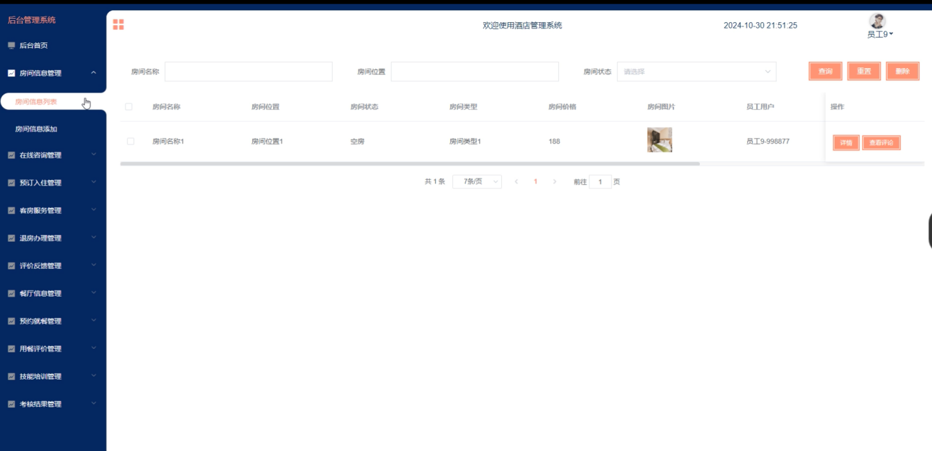Keywords: hotel management; Spring Boot; Java; MySQL