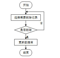 用户选择需要删除的记录后,系统判断是否确认删除。若未确认,返回选择环节;若确认删除,则更新数据库,删除对应记录,完成操作后流程结束。删除信息流程图如图3-8所示。