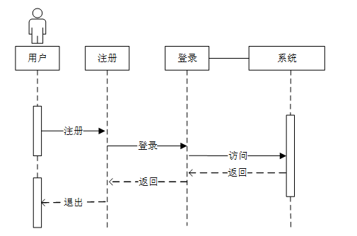 用户通过注册模块发送注册请求,系统完成注册后返回确认信息。随后,用户通过登录模块发送登录请求,系统验证用户信息后允许访问目标系统。用户完成操作后可选择退出,系统终止会话。注册时序图,如图4-3所示。