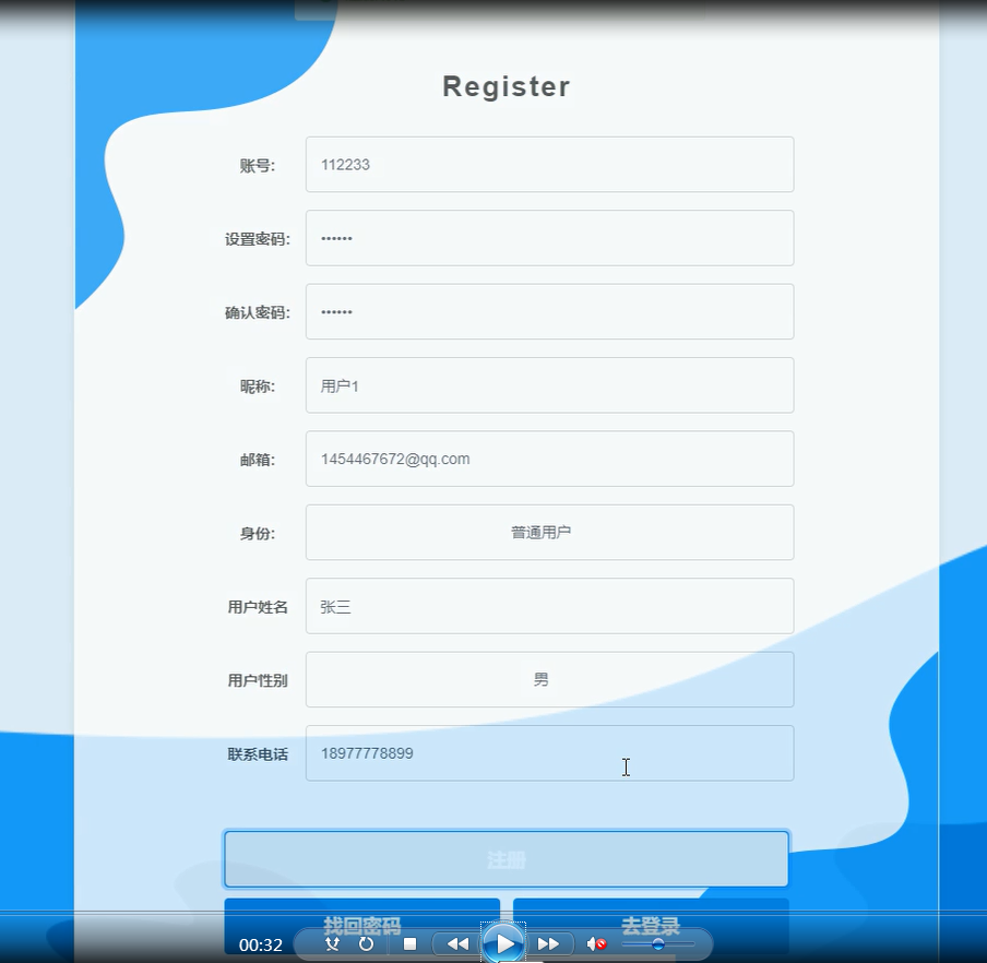 | 注册功能测试 | 打开注册页面 输入合法的用户名、密码、邮箱等信息 点击“注册”按钮 | 无 | 符合预期 |