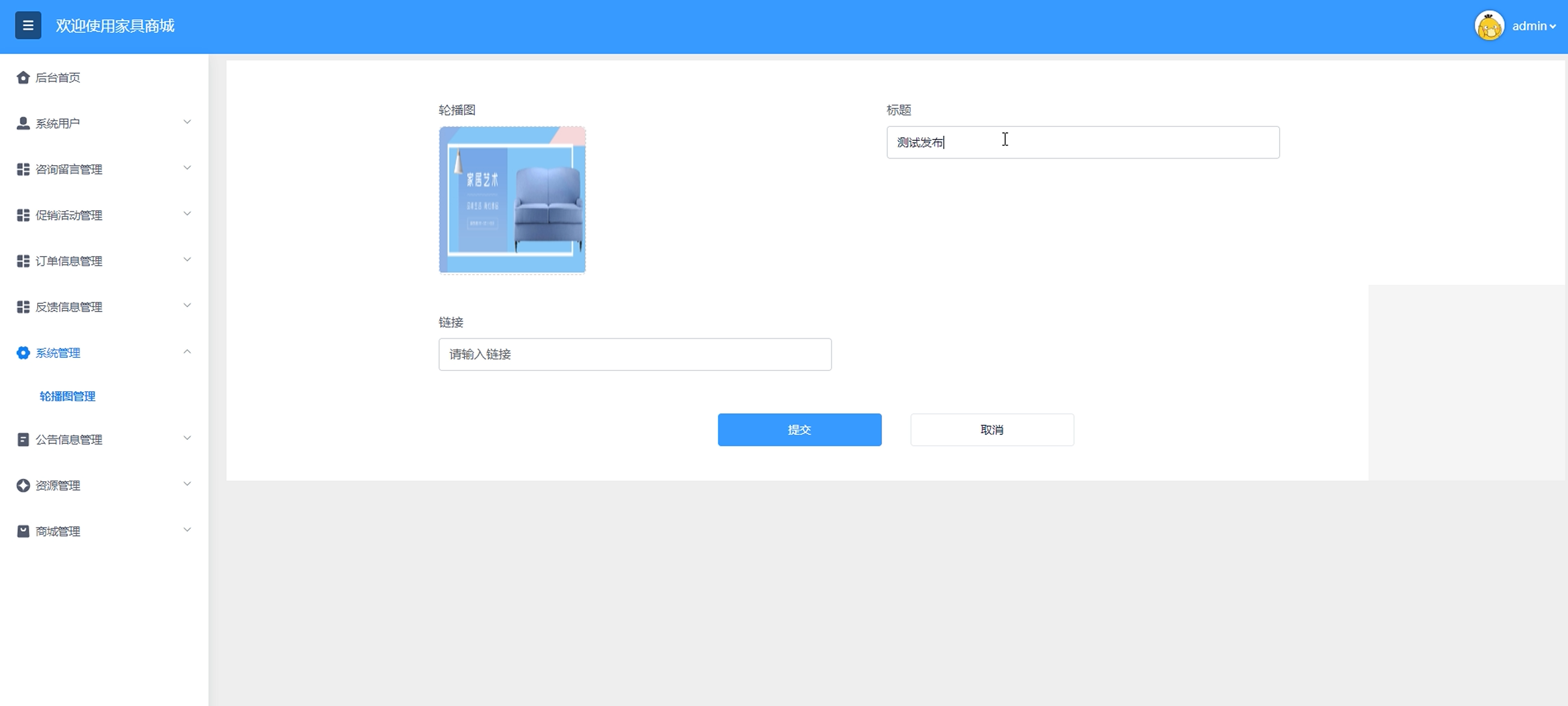 | 家具商城添加测试 | 测试管理员添加家具商城信息 |
