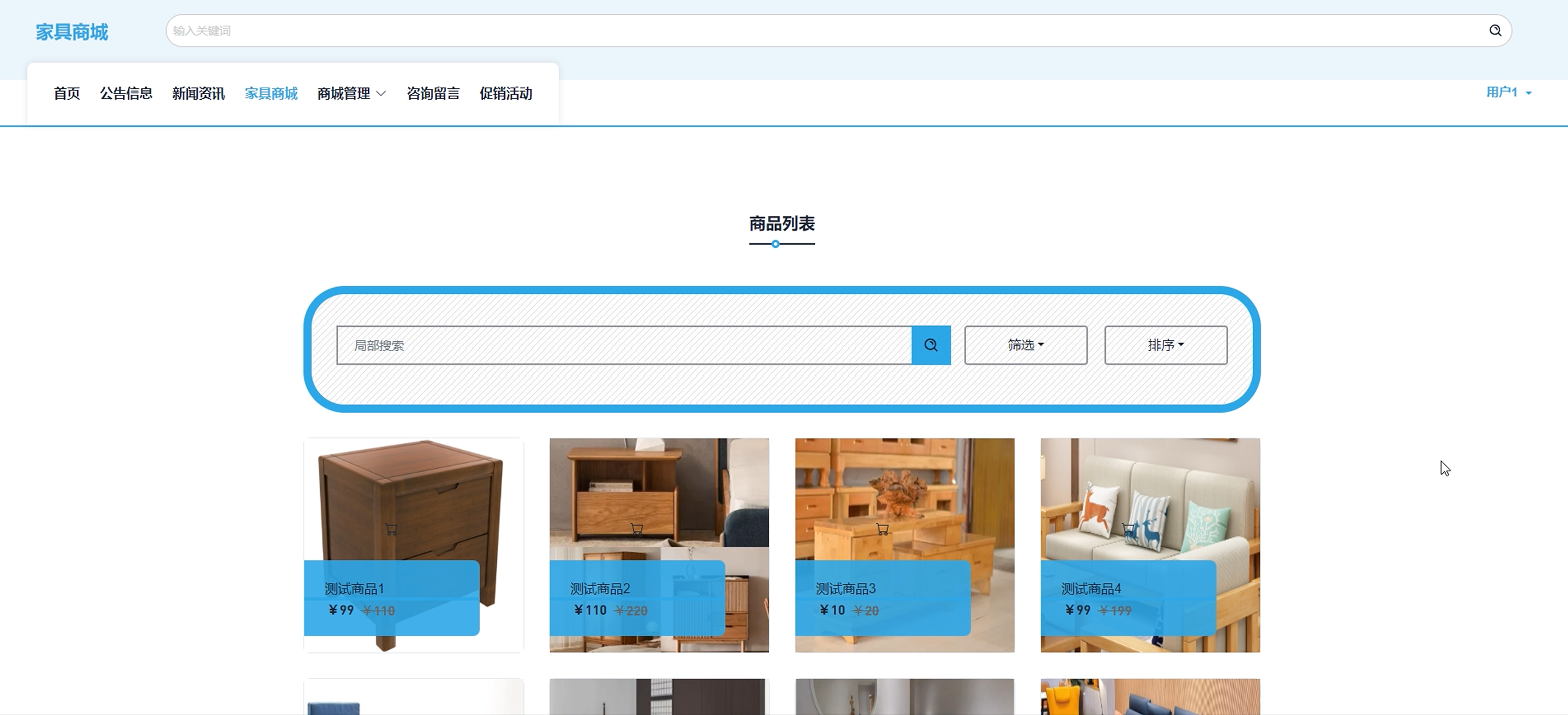 家具商品展示与查询:展示各类型家具商品,并支持按条件查询。