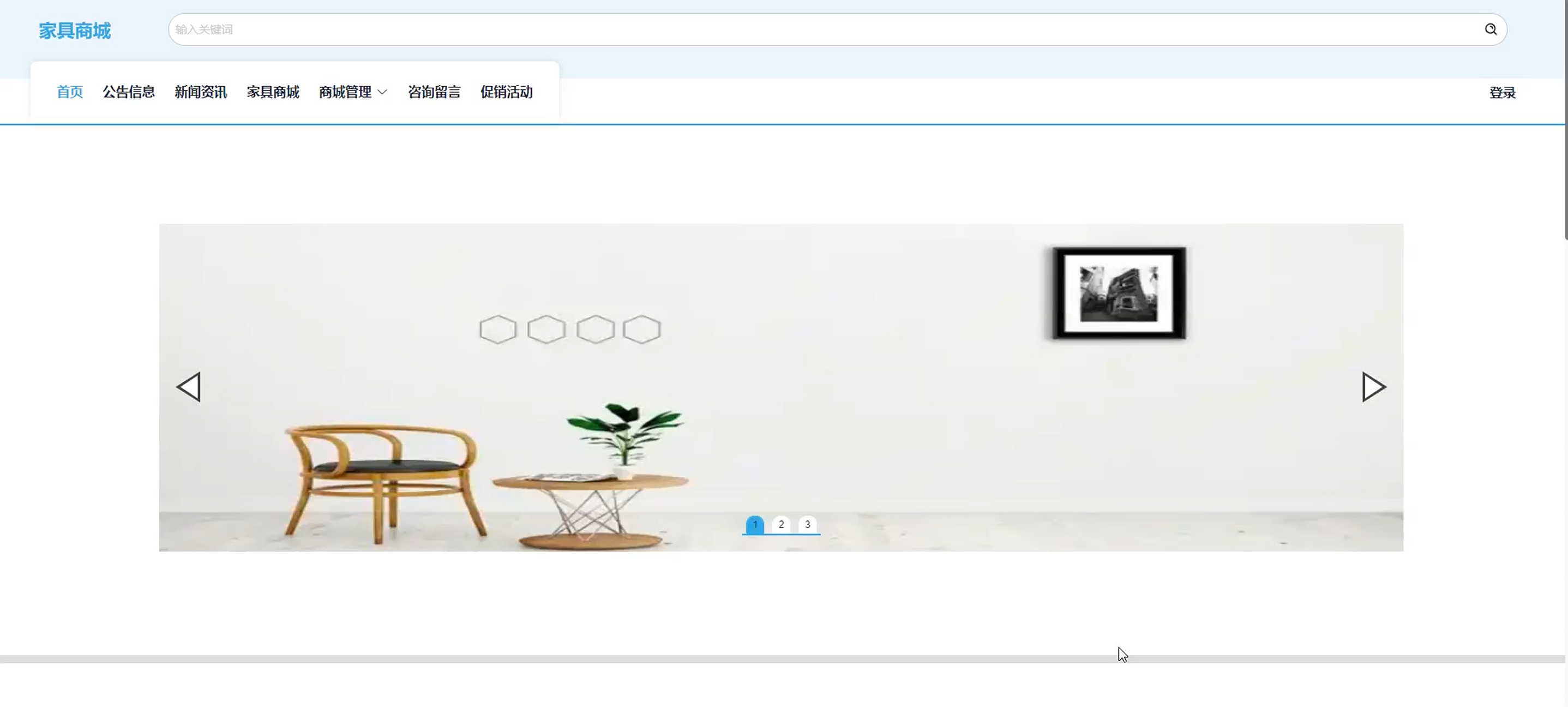 (1)首页:首页包含轮播图、家具资讯,家具商城推荐。
