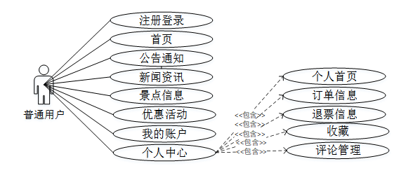图3-1旅游景点在线门票与支付系统普通用户角色用例图