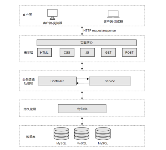 B/S(Browser/Server)架构是一种基于浏览器和服务器的应用架构模式。它以Web浏览器作为客户端,服务器端通过Web技术提供应用服务。客户端通过浏览器与服务器进行交互,用户无需安装专门的客户端应用程序,只需要通过互联网连接即可访问应用程序[1]。在B/S架构中,客户端主要承担用户界面的呈现和基本的输入输出功能,而核心的业务处理、数据存储等操作则由服务器端完成。这种架构的核心优势在于无需在每个客户端机器上安装或更新软件,只要用户的浏览器符合要求,就可以使用系统。