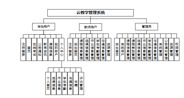 云教学管理系统划分为了前端模块和后端模块两大部分。