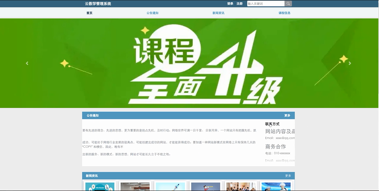 - 首页:学生登录后进入首页,首页展示了系统的轮播图、公告通知和新闻资讯。学生可以快速了解学校的最新动态、公告以及各类新闻。