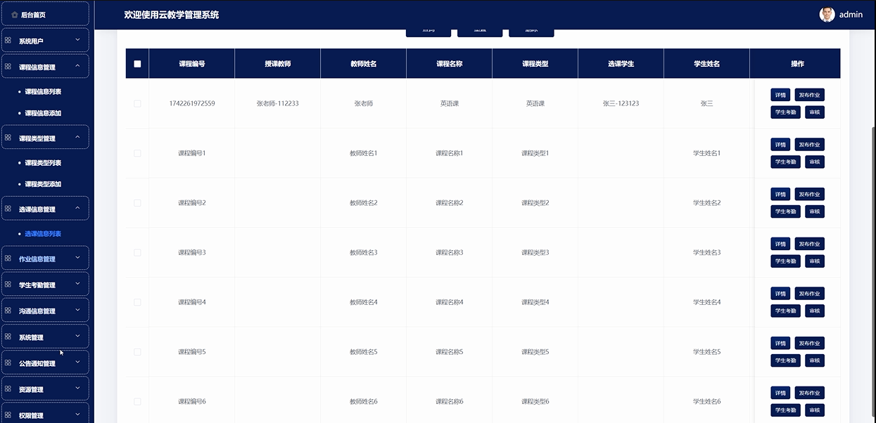 - 作业信息管理:管理员可以查看和管理学生提交的作业信息,并进行批量的作业管理,确保作业上传、批改的高效进行。