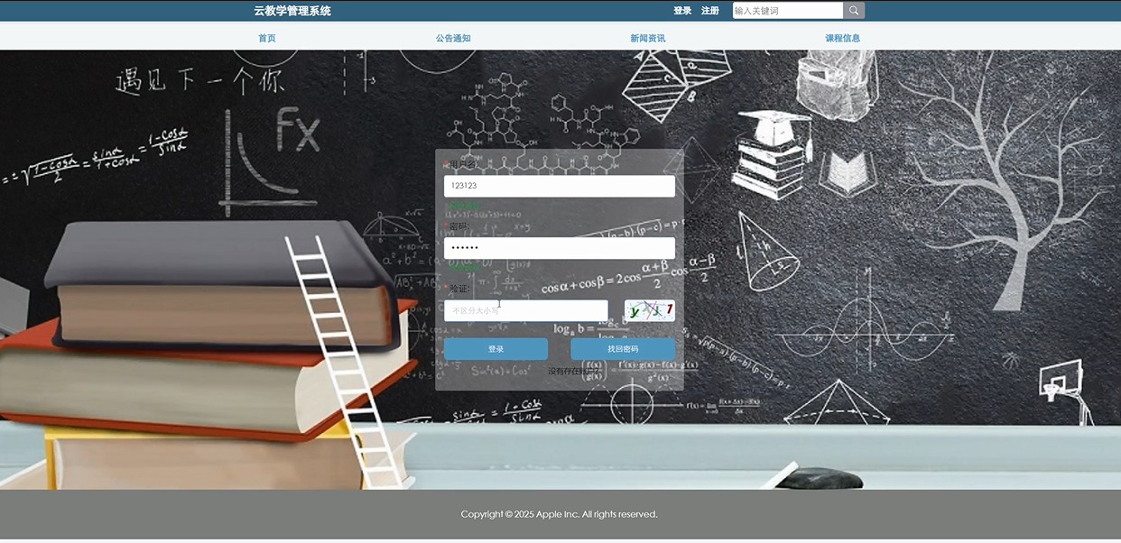 - 登录:教师用户通过系统登录后,进入后台首页,系统提供了教师用户的专属功能与权限,方便教师管理课程与与学生的互动。