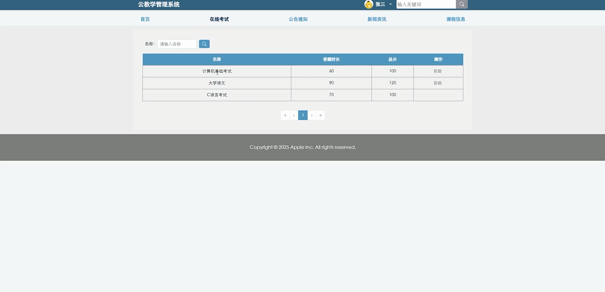 - 在线考试:学生可以在线进行考试,平台提供了答题界面,学生可以根据试题进行作答,考试完成后可提交并等待成绩评定。