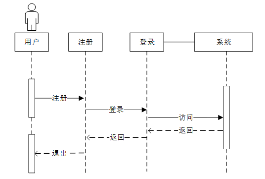 用户通过注册模块发送注册请求,系统完成注册后返回确认信息。随后,用户通过登录模块发送登录请求,系统验证用户信息后允许访问目标系统。用户完成操作后可选择退出,系统终止会话。注册时序图,如图4-3所示。