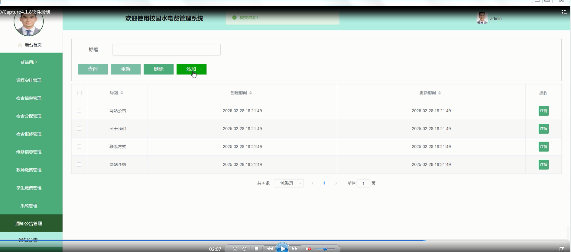 对于学生用户来说,系统提供了一个便捷的首页,方便浏览校园资讯,查看课程安排和网站公告,利用“我的”功能进行日程管理、收藏和评论,处理宿舍分配、宿舍报修及维修信息,并进行学生缴费,帮助学生高效管理个人事务。