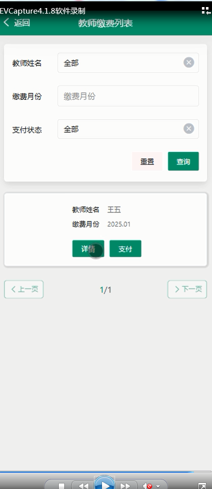 教师用户可以通过此功能在线查看和缴纳水电费,系统提供了详细的费用明细,帮助教师进行个人费用的管理,简化了缴费流程,提高了便利性。教师缴费界面如图5-6所示。