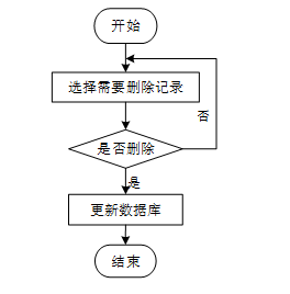 用户选择需要删除的记录后,系统判断是否确认删除。若未确认,返回选择环节;若确认删除,则更新数据库,删除对应记录,完成操作后流程结束。删除信息流程图如图3-9所示。