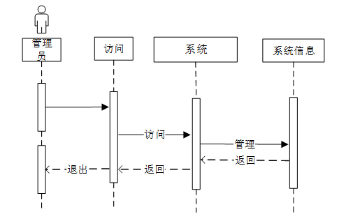 管理员通过访问系统发起请求,系统接收访问后转向系统信息模块进行管理操作。管理完成后,系统返回管理结果至系统,最终反馈给管理员,管理员可选择退出。管理员管理系统信息时序图如图4-6所示。