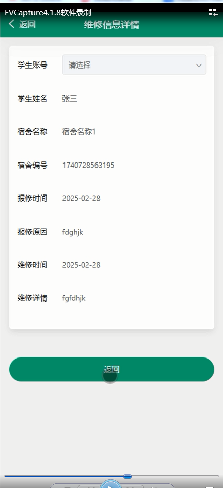 学生可以查看自己提交的维修请求的处理进度及结果,确保报修问题得到及时解决。维修信息界面如图5-3所示。