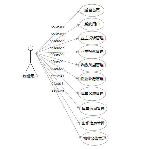 系统用户:管理员负责管理系统中的所有用户,包括管理员、业主用户和物业用户的账户创建和账户管理。