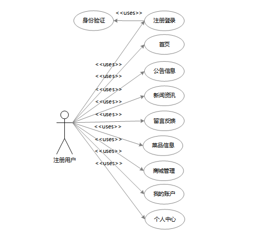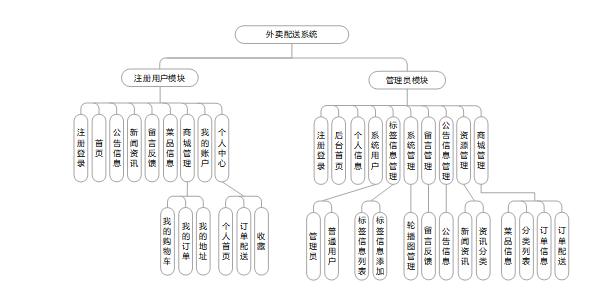 本系统采用前后端分离设计,系统前台用户端主要为注册用户模块;系统后台管理端为商家用户模块。