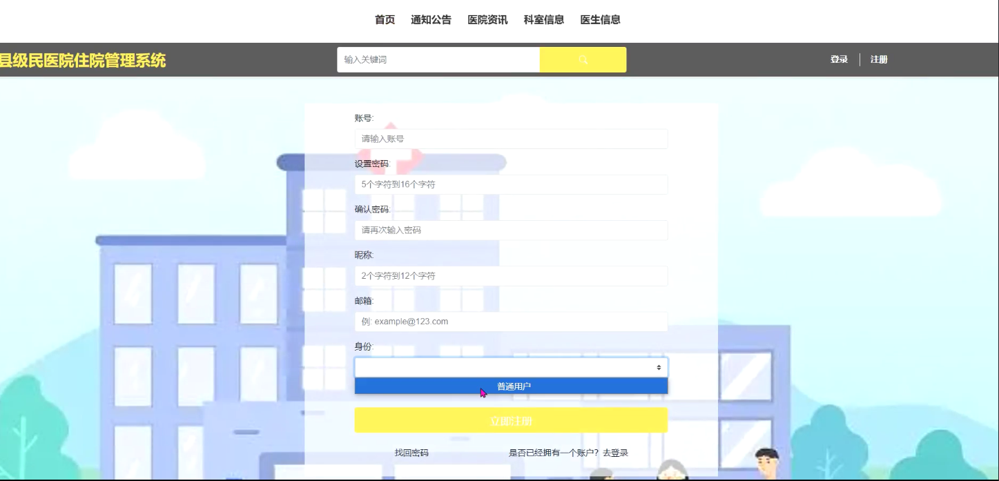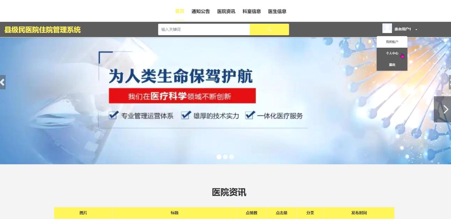 The system mainly includes three roles: patient, doctor, and administrator, each with different functions. Patients can perform hospitalization registration, view personal hospitalization information, and apply for discharge through the system; Doctors can query patients' medical records, issue hospital orders, record treatment status, etc; Administrators are responsible for backend tasks such as user management, hospitalization information management, and bed management. The system is based on the Spring Boot framework, combined with MySQL database for data storage, and has efficient response speed and good scalability.
