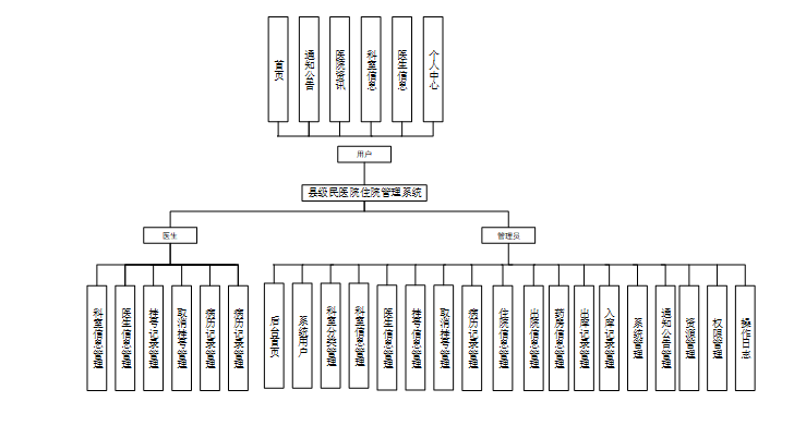 系统总体功能设计为县级民医院提供一个全面的住院管理平台,涵盖管理员、医生和患者三类用户的不同需求。管理员可以通过系统实现医院内部各项管理,包括科室管理、住院信息管理、挂号记录、病例管理、药房管理、住院与出院信息管理、资源配置、权限管理等,确保医院各项事务的高效、有序运行。同时,管理员还可以查看操作日志、发布通知公告,进一步提升管理透明度与协同效率。医生用户主要通过系统处理患者挂号、病历记录、住院及出院管理,实时更新患者的治疗进展与医疗安排,提高诊疗效率。患者用户则可以通过系统查询科室、住院信息、查看医院公告及资讯,管理个人账户,方便快捷地进行挂号、修改个人信息、查看病历等操作。系统通过不同角色的功能模块设计,有效整合医院的各项管理资源,提升医院运营效率、优化患者服务体验,并推动医院管理的数字化转型。