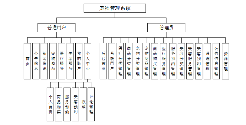 本宠物管理系统旨在满足普通用户和管理员两大角色的不同需求,提供全面的宠物商品销售、医疗服务预约、美容服务预约等功能。系统将通过集成化的平台实现信息的有效整合与管理,支持个性化推荐、服务预约、评论管理等高级功能,同时为管理员提供了强大的后台管理工具,确保系统的高效运行和服务质量。具体功能描述如下:
