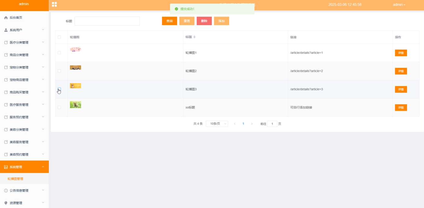 系统管理:允许管理员上传、编辑或移除首页上的轮播图,以展示最新的促销活动或重要通知。通过视觉元素吸引用户关注。
